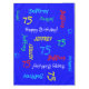What a wonderful, personalised tablecloth for a 75th birthday party or any other occasion. Name and Age repeat in different fonts and primary colours on a bright blue background. Easy to personalise - just CHANGE NAME, AGE, and OCCASION in ONE PLACE. Supports name up to 9 characters. A colourful and fun Birthday Party table cover for any name, any age. Matching paper plates and paper napkins are available on zazzle at SocolikCardShop. All Rights Reserved © 2014 Alan & Marcia Socolik.
