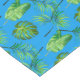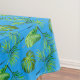 Cotton tablecloth shown in a ocean blue colour with a tropical leaves print.