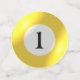 In the 19th century a poolroom was a horse race betting parlour. Pool tables were installed so the bettors could pass time between horse races. Billards, or pool, is the descendant of a game similar to croquet that was played in 15th-century Europe. Though we don't know for sure, it is strongly suspected that billiards came to America with Dutch and English settlers. By the 1700's, skilled cabinet makers were crafting beautiful tables, though the equipment was, otherwise, quite primitive. Fifteen-ball pool came on the scene in the late 1800's and grew in popularity through the 1940's. Billiards was revived in 1961 with the release of the movie THE HUSTLER. It enjoyed another surge in the mid 1980's with the release of the movie sequel, COLOR OF MONEY. Since that time, there has been an evolution of the environs in which we find pool tables -- they're in restaurants and night clubs and sports bars, allowing pool to find a modern audience and new generations of enthusiasts. This marvellous design features the bold, yellow ONE ball . . . making this tablefetti an excellent choice for 1st birthdays, anniversaries . . . or any other noteable first. The reverse is a coordinating solid yellow featuring text you may personalise to your special "first" event.