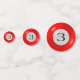 In the 19th century a poolroom was a horse race betting parlour. Pool tables were installed so the bettors could pass time between horse races. Billards, or pool, is the descendant of a game similar to croquet that was played in 15th-century Europe. Though we don't know for sure, it is strongly suspected that billiards came to America with Dutch and English settlers. By the 1700's, skilled cabinet makers were crafting beautiful tables, though the equipment was, otherwise, quite primitive. Fifteen-ball pool came on the scene in the late 1800's and grew in popularity through the 1940's. Billiards was revived in 1961 with the release of the movie THE HUSTLER. It enjoyed another surge in the mid 1980's with the release of the movie sequel, COLOR OF MONEY. Since that time, there has been an evolution of the environs in which we find pool tables -- they're in restaurants and night clubs and sports bars, allowing pool to find a modern audience and new generations of enthusiasts. This marvellous design features the bold, red THREE ball . . . making this tablefetti an excellent choice for 3rd birthdays, anniversaries . . . or any other noteable third. The reverse is a coordinating solid red featuring text you may personalise to your special "third" event.