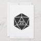Bring touch of geeky fun to your event with this wedding invitation featuring a deep black border on the right side, decorated with a pattern of twenty-sided dice. The left side of the card has plenty of space for all of the details for your special event with some sample text in place that can be customised to fit your needs. A large d20 in black finishes things off on the back to create a great final note.