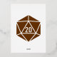 Bring touch of geeky fun to your event with this wedding invitation featuring a rich chocolate brown border on the right side, decorated with a pattern of twenty sided dice printed in real foil. The left side of the card has plenty of space for all of the details for your tabletop gaming-themed event with some sample text in place that can be customised to fit your needs. A large, brown d20 finishes things off on the back to create a cute final note. This invitation will match with any other Tabletop Chic in Chocolate product so that you can easily make your event as coordinated as you desire.