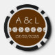 Give the guests, bridesmaids, groomsmen, or anyone else attending or helping with your geeky wedding or special event a fun treat with these customisable poker chips. One side of the poker chip features a white twenty sided die on a rich chocolate brown background. The other side has a sample set of initials and date separated by a pattern of d20s. The sample text can be customised with your own details or a special message of your choice to create a unique and personal token to commemorate your big day. This design will match any product from the Tabletop Chic in Chocolate line so that you can make your tabletop themed wedding or special event as coordinated as you like.