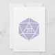 Bring touch of geeky fun to your event with this wedding invitation featuring a pastel lavender border on the right side, decorated with a pattern of twenty-sided dice. The left side of the card has plenty of space for all of the details for your special event with some sample text in place that can be customised to fit your needs. A large d20 in lavender finishes things off on the back to create a great final note.