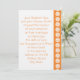Bring touch of geeky fun to your event with this wedding invitation featuring a bright orange border on the right side, decorated with a pattern of twenty-sided dice. The left side of the card has plenty of space for all of the details for your special event with some sample text in place that can be customised to fit your needs. A large d20 in orange finishes things off on the back to create a great final note.