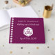 Create a fun custom way for the guests of your geeky wedding or event to leave their names and messages for the happy couple. A deep wine background is decorated with a white twenty-sided die on both the front and the back. Alongside the spine, a pattern of d20s creates a cute accent. The front has a sample message, names, and date that can be customised to make this book unique for the event.