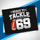 This fun football birthday design is perfect for a 69th birthday football theme birthday party to celebrate turning 69 years old! It is also great for a 69 year wedding anniversary party for couples celebrating their 69th anniversary together. Features "Ready To Tackle 69" quote with football graphic. Perfect for anyone who loves football!