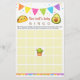 Taco bout a Baby Shower Bingo Game - so fun for the guests and mom-to-be. Light yellow squares with a cute taco and avacodo with "talik about a baby" for a fiesta theme baby shower.