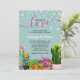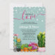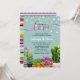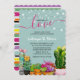 Bright and colourful Taco 'Bout Love fiesta couples shower invitation featuring elegant calligraphy script, watercolor cactus plants and flowers, fairy lights, a modern party template that is easy to customise with your own details.