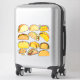 The stick looks amazing. Unfortunately, it would not stick on our suitcase as it was textured. When we found a non-textured (smooth) suitcase, the sticker stuck and looks great. The printing looked awesome.