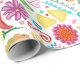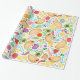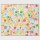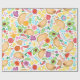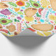 Fun & festive wrapping paper featuring tacos, tortilla chips, avocados, chilli peppers, onions, cilantro, limes, flowers and festive confetti in vibrant colours on a bright white background