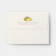 This simple and modern envelope features your name and your address with pair tacos on a cream background. The inside of the envelope features a coral pink background with patterns of white arrows. Personalise it for your needs.