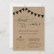 Invitation features hand-drawn taco duo and beer toast artwork on a wonderfully rustic kraft background.