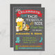 It's a Fiesta with this super cool Tacos, Tequila and Beer Couples Shower party invitations. Great for an engagement party. Features a shot glass of tequila, taco and a cold beer mug with banner and fun typography against a chalkboard background. Hand drawn illustration by McBooboo's.