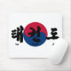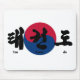 Tae Kwon-Do in Korean calligraphy big text /English small text with flag in back