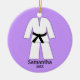 Taekwondo Karate Black Belt Purple Personalised Ceramic Tree Decoration