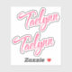 Taelynn name in pretty pink decorative cursive script font lettering. Two copies.