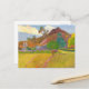 Tahitian Landscape (1891) by Paul Gauguin is a vivid portrayal of the artist's time in Tahiti, capturing the island’s lush beauty and vibrant colours. The painting showcases the tropical landscape, with bold brushstrokes emphasizing the rich greenery and the serenity of the environment. Gauguin's use of bright, saturated colours is characteristic of his exploration of post-impressionism and his shift towards symbolism. The scene is tranquil yet dynamic, with sweeping curves of the land and the ocean blending seamlessly. The work evokes the idyllic and exotic nature of Tahiti, reflecting the artist's desire to connect deeply with nature while escaping Western civilisation.