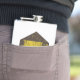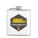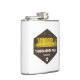 The flask itself is fine. It’s a cheap flask, obviously bought in bulk, however am prepared to overlook that. Given that it is a personalized item, I would have liked to have seen gift boxing instead of the generic packaging. Terrible printing, and/or quality. It’s a cheap, tacky vinyl. It is not cut straight and is also applied in a way that it is overhanging the bottom, causing the glue to catch on items and it will eventually roll and tear, damaging the wrap.