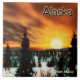 Winter in the Arctic taiga. With the sun low on the horizon the snow glows and the sky burns orange and yellow. Text reading "Alaska" also appear which you may easily delete if desired. Add your own additional text.