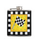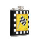 Show your love of racing (nascar, dirt, drag, motorcycle, etc) with your flask featuring a black and white chequered flag and personalised with your name on the back. Great to carry your favourite beverage to a race party or for tailgating. Customisable so that you can personalise your name, location, business or favourite driver or say congratulations either below the flag or below the entire design - its easy to customise to add a word or date for a gift to a driver. A waving black and white chequered flag is centred on a textured yellow background. A black and white chequered border surrounds the art. This is an original art design by Phyllis Dobbs.