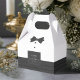 This gable-style favour box, shown here with a sweet black bow tie and buttons design, has a template to easily add your own names and wedding date. Featuring sleek graphics that echo the refined details of a classic tuxedo, this wedding collection includes elements like pleated patterns, crisp whites and glossy black accents for a tailored, modern vibe. Perfect for two-groom couples who love bold minimalism, this design delivers an effortlessly elegant aesthetic that’s both timeless and sophisticated. Search ID1090 to see other pieces in this coordinated wedding set.