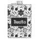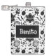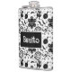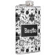 The flask itself is fine. It’s a cheap flask, obviously bought in bulk, however am prepared to overlook that. Given that it is a personalized item, I would have liked to have seen gift boxing instead of the generic packaging. Terrible printing, and/or quality. It’s a cheap, tacky vinyl. It is not cut straight and is also applied in a way that it is overhanging the bottom, causing the glue to catch on items and it will eventually roll and tear, damaging the wrap.