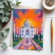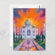 Taj Mahal Watercolor Sunset India Travel Postcard