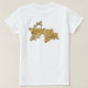 The front of this t-shirt boldly displays the Tajik flag with its distinctive gold motif on a white band with a red band above and green band below. This is matched at the back by an attractive map of Tajikistan.