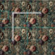In Take a Bow, marble urns cradle baroque blooms—lavender, ivory, and wine-red roses spilling in decadent arcs over teal shadows. At the forefront, a sinewy, horned figure crouches in a poised bow, its long tail curling like an unfinished signature. The scene feels both theatrical and conspiratorial, as if the grotesque performer is offering one final, knowing salute before vanishing into the floral grandeur. Ideal for upholstery, drapery, or garments that delight in the union of elegance and mischief.