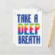 Take a Deep Breath inspirational message to promote relaxation and remind someone to breathe and stay calm and centred. Can be sent as an encouragement card for someone who is having a hard time. Typographic design with blue and the word "deep" in a rainbow blend of colours.