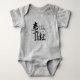 A baby bodysuit featuring a silhouette nature typography design with the words "Take A Hike," embellished with a pine tree, bird, and grass. Great gift for a baby of parents who love hiking and the great outdoors.