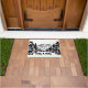 Monochrome illustration with view to mountains and snowy winter wood drawing in woodcut style