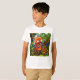 100% cotton so perfect for summer, It is a nicely designed t-shirt, the fabric is soft and the seams finished well, the body of the t shirt has no side seams. I bought a medium size for my two grandsons, aged 9 and 8 it will be slightly big on them but I would rather that than too small