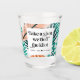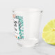 Tropical wedding keepsake favours for your beach wedding guests. Shot glasses featuring a tropical pattern with black text design that reads - Take a shot, we tied the knot. Customise with your names and wedding date.