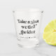Black and white typography design wedding keepsake favours for your wedding. Shot glass that reads - Take a shot we tied the knot. Customise with your names and wedding date.