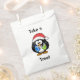 "Take a treat" favour bag with penguin in Santa hat holding Christmas presents.