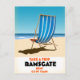 Take a Trip to Ramsgate, Kent vintage style ravel poster art print of a retro deck chair on the sandy beach,.