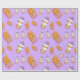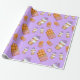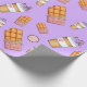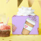 This lavender wrapping paper has a seamless pattern of take away coffee cups and chocolate bars on it. This coffee and chocolate design is hand drawn with markers and coloured pencils.