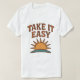 Bring calm, positivity, and retro vibes to your wardrobe with this “TAKE IT EASY” motivational T-shirt design. Featuring a classic vintage font and a warm sunrise illustration, this artwork is perfect for anyone who loves peaceful mornings, relaxed moods, and simple living. The design blends earthy tones with soft sun rays, creating a nostalgic 70s aesthetic that looks great on any color shirt.