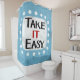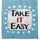 "Take It Easy" is a cute inspirational or motivational quote with a white accent shape surrounded by white textured whimsical dots.