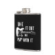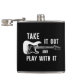 The flask itself is fine. It’s a cheap flask, obviously bought in bulk, however am prepared to overlook that. Given that it is a personalized item, I would have liked to have seen gift boxing instead of the generic packaging. Terrible printing, and/or quality. It’s a cheap, tacky vinyl. It is not cut straight and is also applied in a way that it is overhanging the bottom, causing the glue to catch on items and it will eventually roll and tear, damaging the wrap.