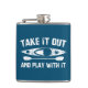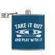 The flask itself is fine. It’s a cheap flask, obviously bought in bulk, however am prepared to overlook that. Given that it is a personalized item, I would have liked to have seen gift boxing instead of the generic packaging. Terrible printing, and/or quality. It’s a cheap, tacky vinyl. It is not cut straight and is also applied in a way that it is overhanging the bottom, causing the glue to catch on items and it will eventually roll and tear, damaging the wrap.