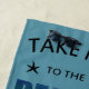 Take Me to the Beach Beach Towel - On blue background decorated with starfish and decorative text: "Take Me To The Beach"