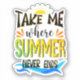If you’re dreaming of endless summer, this "Take Me Where Summer Never Ends" design is perfect for you! It’s a vibrant sticker that captures a carefree, beachy vibe with bright colours and a fun font. Ideal for decorating laptops, water bottles, notebooks, and more, it’s the perfect way to bring a touch of summer to your everyday items. Check it out now and get your summer on!