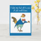 Vintage cartoon of a rooster in suit and bow tie holding his hat in hand. Above " I take my hat off to you. A job well done"