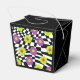 Super cute retro style party favour box will delight every guest at your party! Take out style favour box , with artwork by Buttercup's Clothing and Collectables feature a fun abstract pattern of crooked black and white checkers with flowers in shades of hot pink , purple , and lime green. Just groovy !