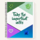 A suitable description could be: "A stylish spiral notebook featuring a 'Take the important notes' design with green and blue accents, a heart motif, and rose illustrations, ideal for personal use or as a gift." This elaborates on the visual elements of the notebook.