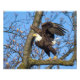 A magnificent bald eagle, photographed as it leaps into the air from a tree limb.