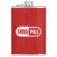The flask itself is fine. It’s a cheap flask, obviously bought in bulk, however am prepared to overlook that. Given that it is a personalized item, I would have liked to have seen gift boxing instead of the generic packaging. Terrible printing, and/or quality. It’s a cheap, tacky vinyl. It is not cut straight and is also applied in a way that it is overhanging the bottom, causing the glue to catch on items and it will eventually roll and tear, damaging the wrap.